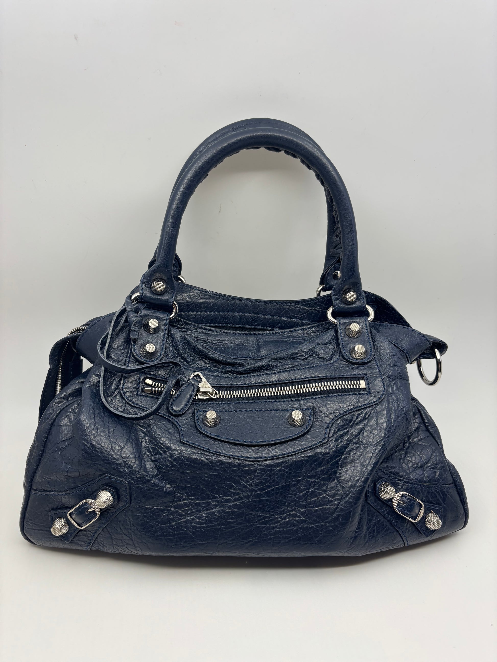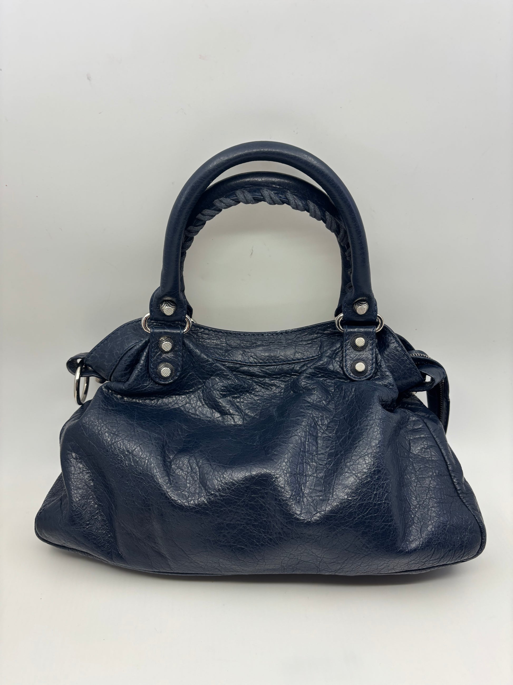 Balenciaga Classic City Bag – Navy Blue with Silver Hardware