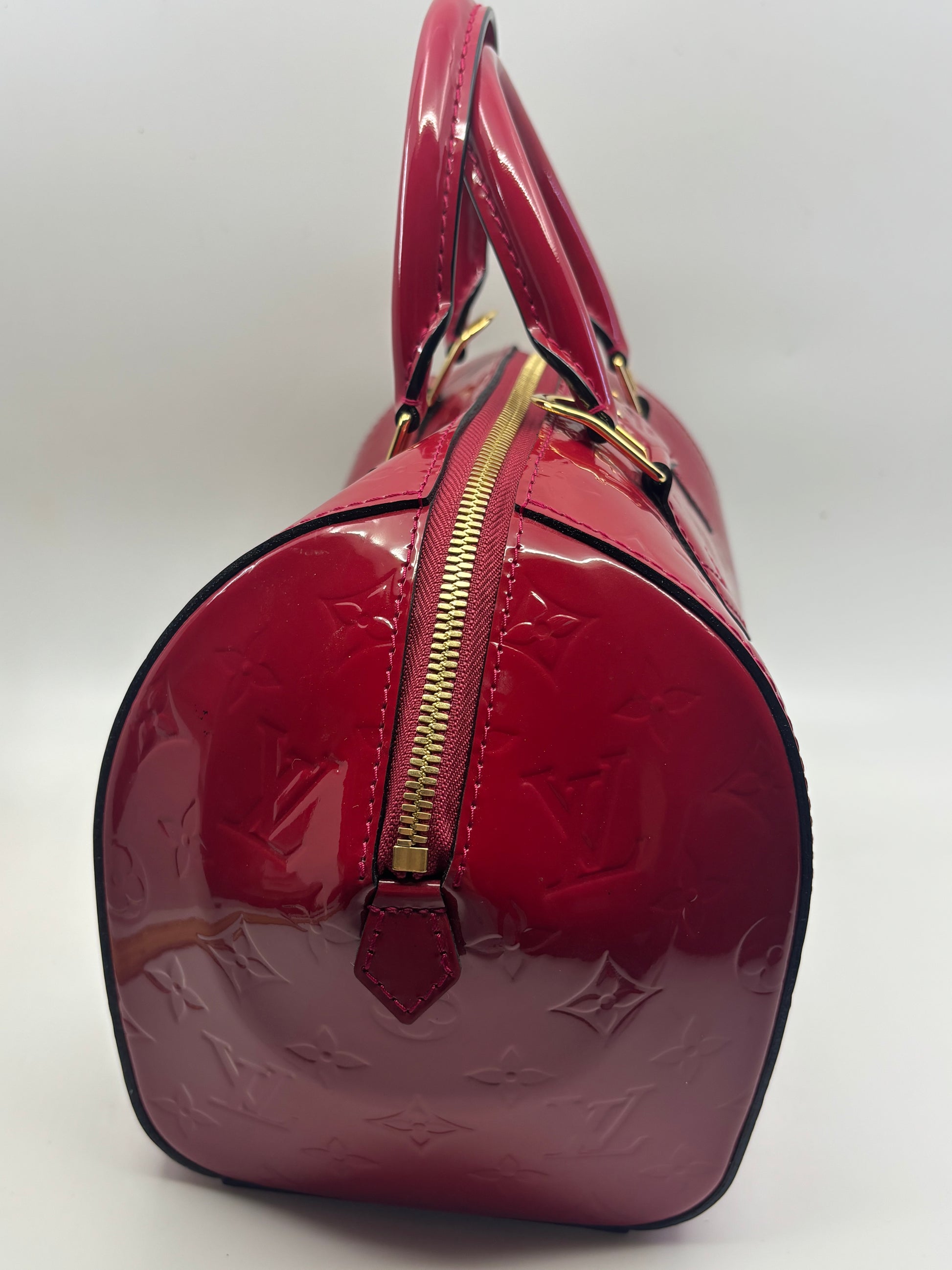 - Condition: Pre-loved – overall excellent condition, light signs of wear on patent finish and hardware typical for Vernis leather