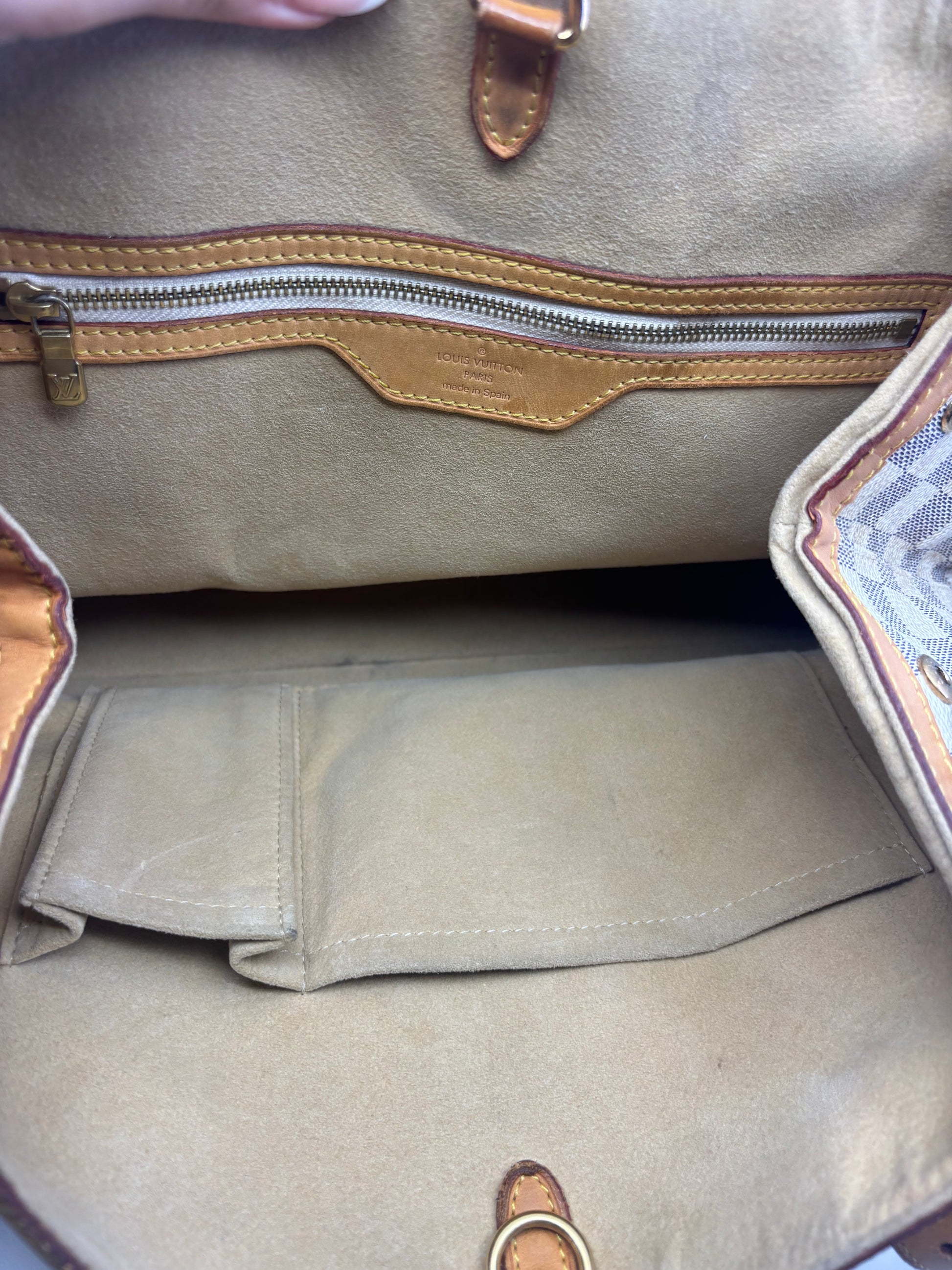 - Material: Damier Azur coated canvas & Vachetta leather