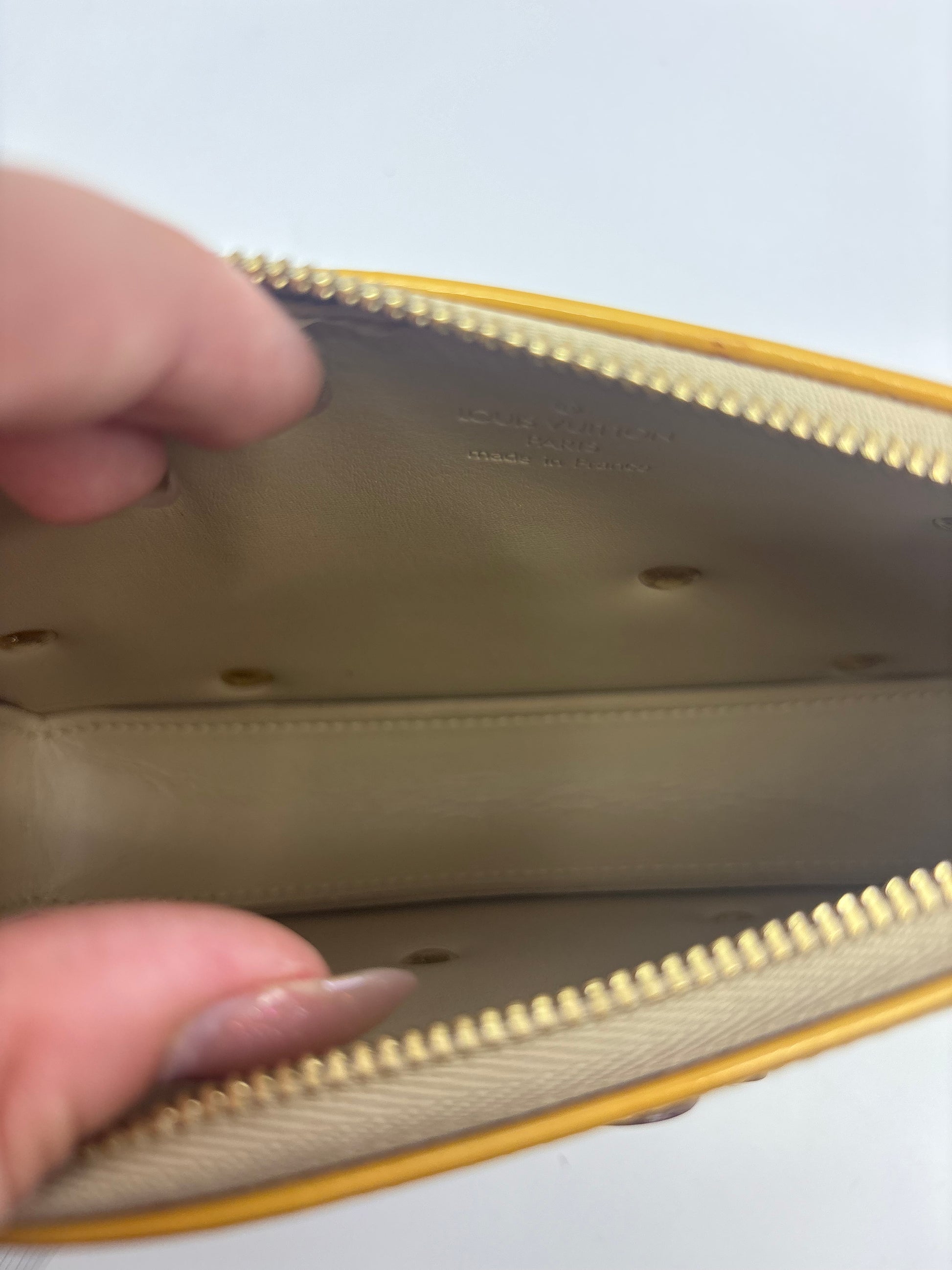 - Material: Monogram embossed Vernis patent leather
